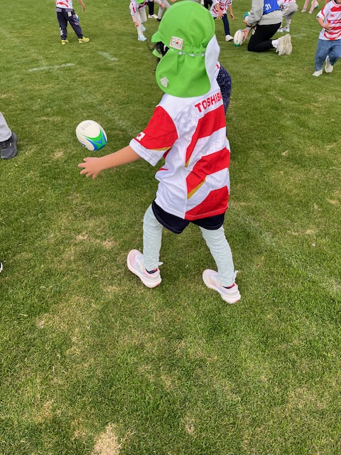 今日はラグビーの体験をするため総合運動公園に行きました。