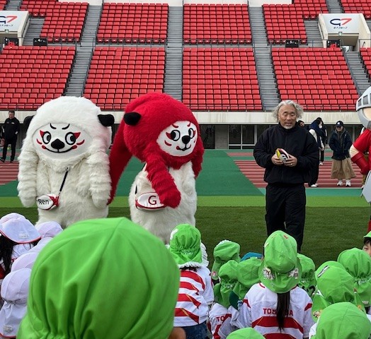 今回は保護者の方の観覧も可能でしたので、寒い中でしたが見ていただくこともできました。最後にプレゼントのボールをもらって嬉しかった子ども達でした⭐︎