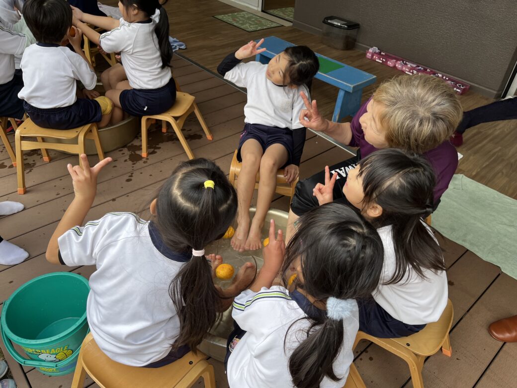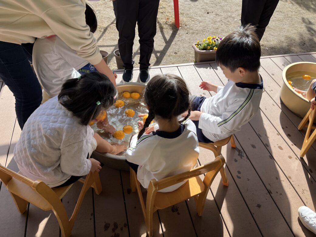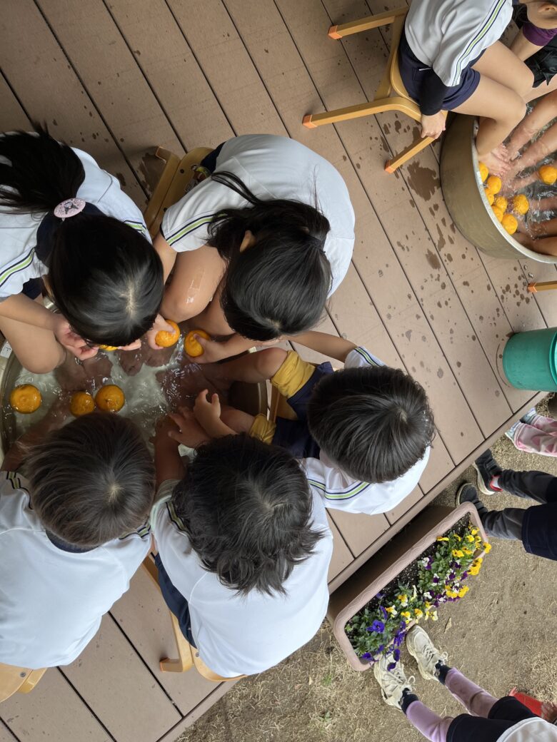 もも組、さくら組のお友だちで柚子の足湯をしました♪