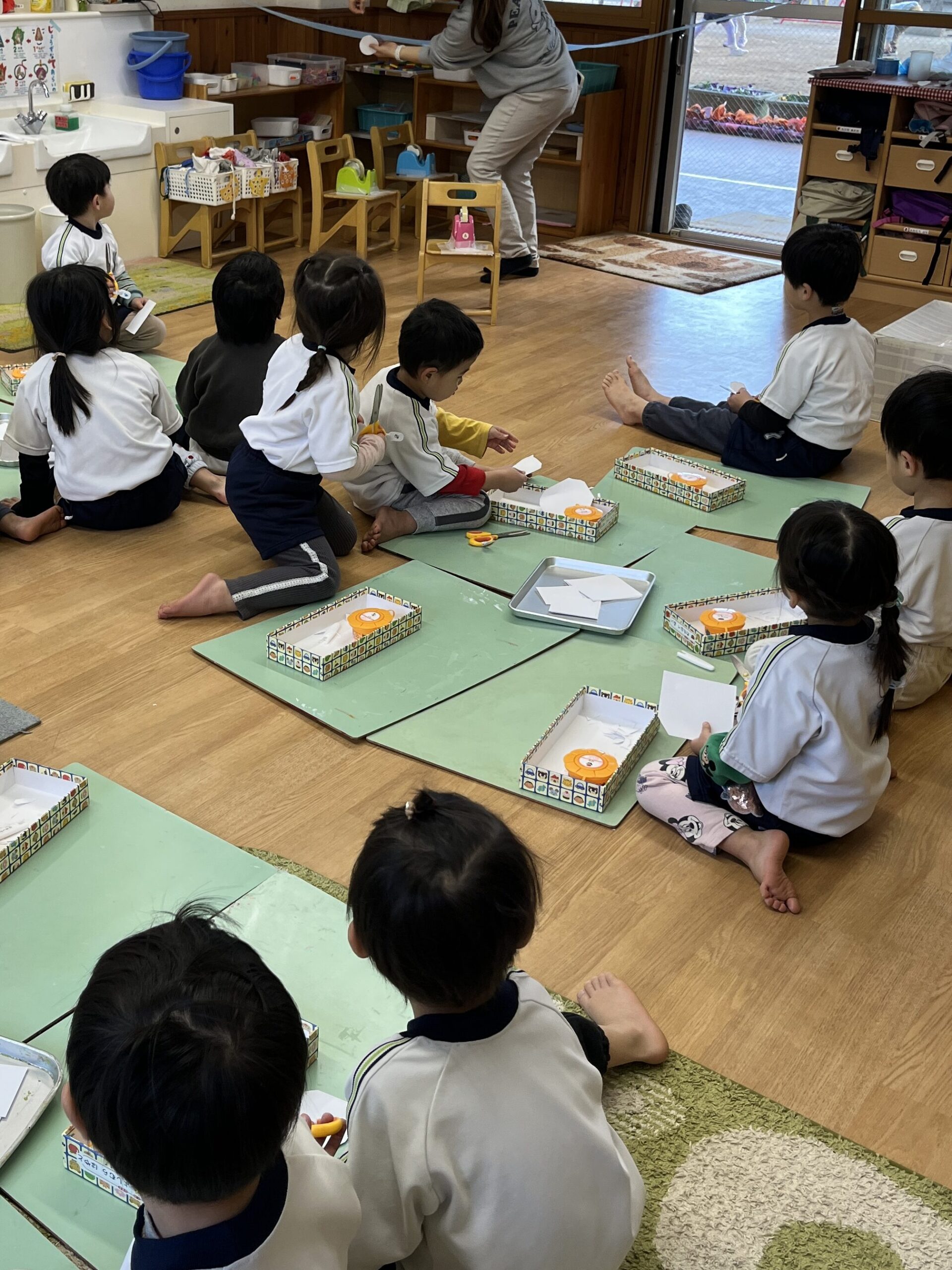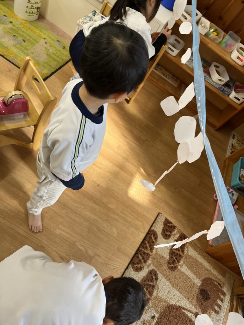 たくさんの雪をお部屋いっぱいに作ってご満悦の子どもたち。